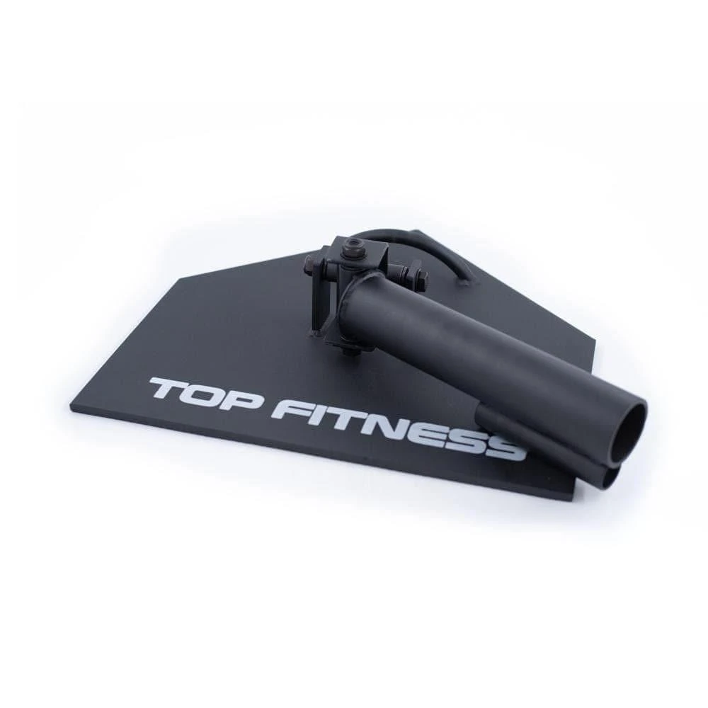 Perform one or two arm movements and other rotational exercises by inserting any Olympic size bar (sold separately) into the twelve inch pivoting sleeve at the base of the unit. A four inch sleeve is also available to hold standard (1″) bars. Adjust the difficulty by changing the length of the bar or by adding plates (sold separately). Steel loop carry handle for easy transport when not in use. Indoor/Outdoor use. Assembly required. Black.